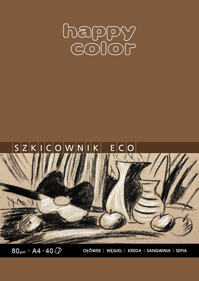 Producent: Happy Color• Do ołówka, kredek, pasteli, węgla, sepii i sangwiny • Papier z recyklingu o delikatnej szorstkiej strukturze w kolorze ochry • Proste arkusze bez sfalowań