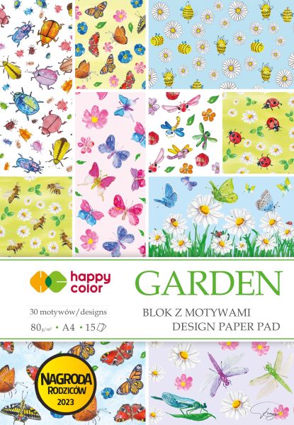 Blok z motywami GARDEN, 80g/m2, A4, 15 ark, 30 motyw., Happy Color [opakowanie=5szt]