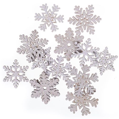 Drewniane śnieżynki samoprzylepne z brokatem DPCRAFT 12 szt. Białe