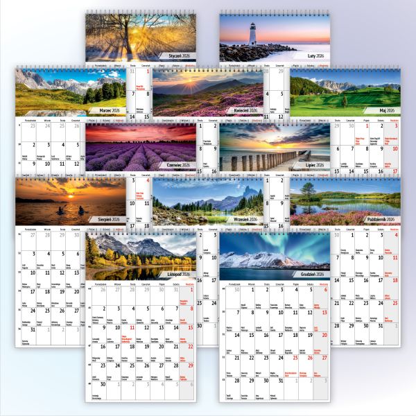 ✔ Estetyczne fotografie pejzaży – dekoracyjny charakter kalendarza.