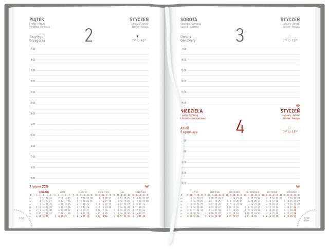 ✔ Układ: dzień na stronie, sobota i niedziela wspólnie.