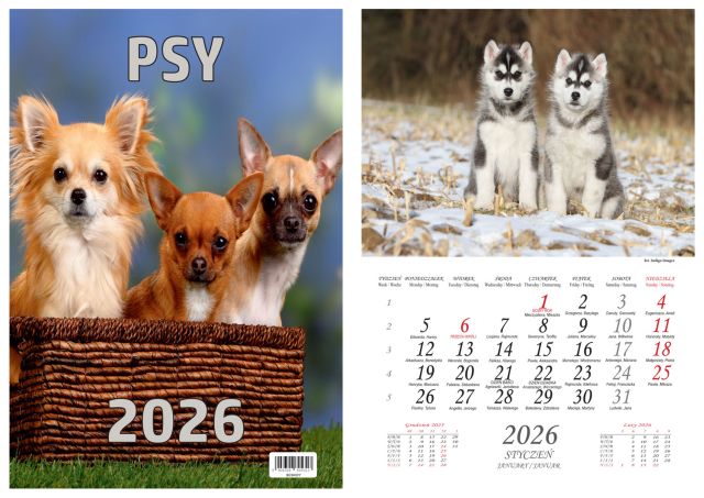 Kalendarz wieloplanszowy BESKIDY W07 13 zdjęciowy Psy 2026