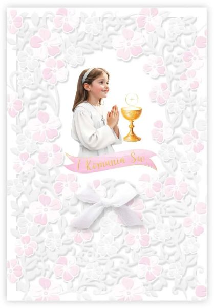 Kartka na Pierwszą Komunię B6 KZK LC Złocona i Tłoczona nr.27 dla Dziewczynki