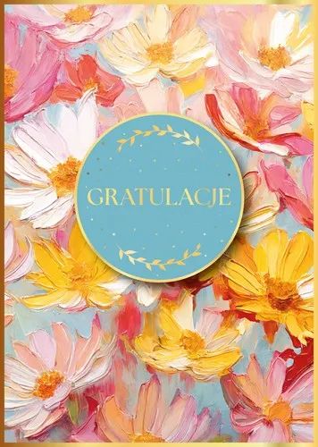 Kartka z serii Armin Style z napisem „Gratulacje” to wyjątkowy sposób, aby uczcić ważne osiągnięcia i radosne chwile bliskich. Barwna kompozycja kwiatów w odcieniach różu, żółci i bieli, wykonana w malarskim stylu, ozdobiona jest złoceniami oraz subtelnymi elementami przestrzennymi, które dodają elegancji i głębi. Wewnątrz znajdują się gotowe życzenia, a całość dopełnia kolorowa koperta idealnie dopasowana do stylistyki kartki.