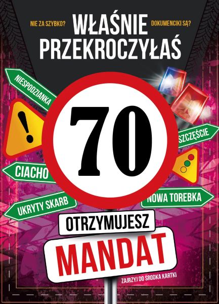 Kartka urodzinowa ARMIN STYLE GM-1274 "Przekroczyłeś 70 - Otrzymujesz Mandat"