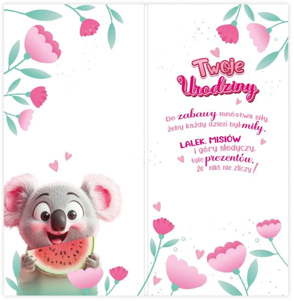 🍉 Karnet DL Twoje Urodziny – 105x210mm z Koalą