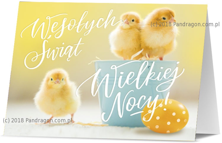 Przeurocza kartka wielkanocna z motywem żółtych kurczaczków siedzących na pastelowym wiaderku obok eleganckiej pisanki w groszki. Jasna, wiosenna kolorystyka sprawia, że kartka jest idealnym sposobem na przekazanie ciepłych świątecznych życzeń. Wykonana z wysokiej jakości papieru i pokryta lakierem punktowym, który nadaje głębię barw i elegancki połysk.