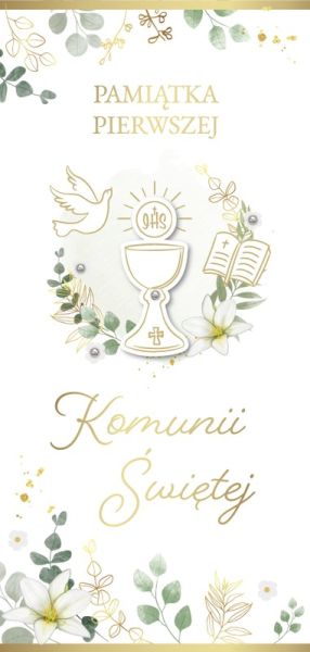 Pamiątka Pierwszej Komunii Świętej – Elegancki Karnet DL ze Złoceniami