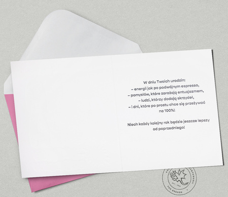 W zestawie znajduje się koperta, kolorystycznie uzupełniająca się z kartką.