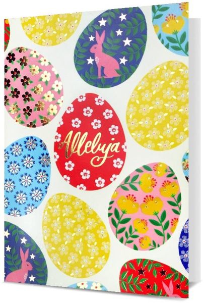Kartka Wielkanocna „Alleluja” z Kolorowymi Pisankami i Zajączkiem – Elegancja Świąt! 🐰🥚✨