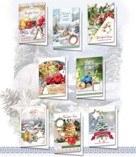 Kartki świąteczne TOP B6 naklejany element BBNOP z opłatkiem świeckie