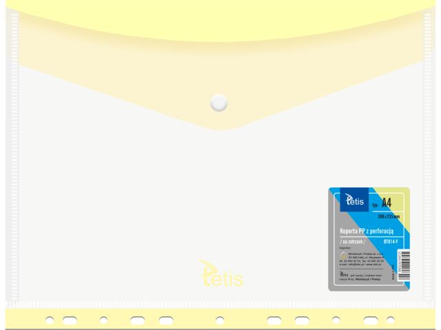 Koperta PP na zatrzask z perforacją A4 TETIS BT614 żółta