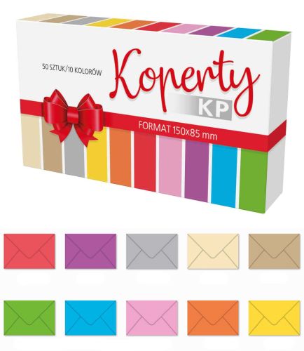 Koperty kolorowe na pieniądze 150x85 opak 50 szt. Ogólne mix