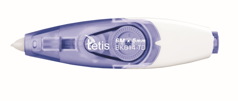 Producent: TetisKorektor w taśmie o ergonomicznym, nowoczesnym kształcie. Ulepszony system korekcji umożliwia natychmiastowe pisanie każdym rodzajem długopisu. Nie pozostawia śladów i cieni na kserokopiach. Posiada automatycznie wysuwaną, ruchomą głowicę korygującą. Dodatkowo wyposażony w regulację naciągu taśmy.