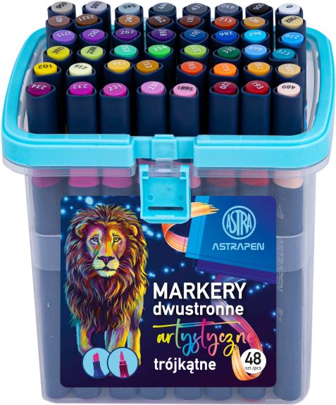 Strona główna » Oferta » Pisaki, Markery, Zakreślacze » Markery i Pisaki Zdobnicze i artystyczne » Markery artystyczne trójkątne dwustronne ASTRAPEN - 48 kolorów - pędzelkowa i ścięta końcówka