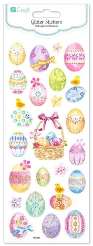 NAKLEJKI BROKATOWE - KOLOROWE PISANKI, 24 SZT