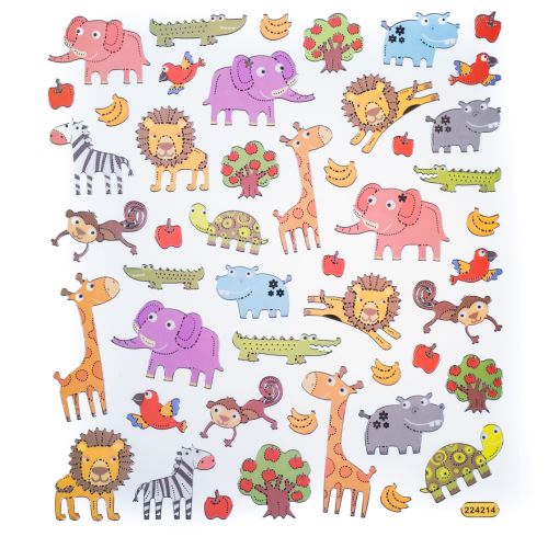 Producent: DalprintZestaw kolorowych naklejek z błyszczącymi srebrnymi akcentami z motywem egzotycznych zwierzaków .
