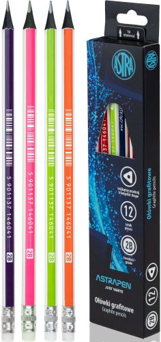 Strona główna » Oferta » Ołówki » Ołówki Szkolne » Ołówki w opakowaniach » Ołówki grafitowe Astra z czarnego drewna z gumką 2B [box=12
