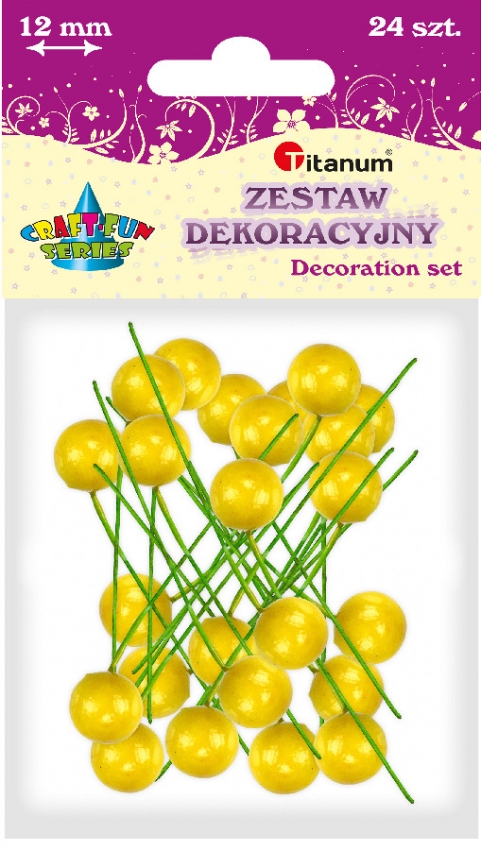 Strona główna » Oferta » Artykuły Ozdobne i Kreatywne » Ozdoby na Piku i Zawieszki » Ozdoby na Piku » Ozdoba na piku - kulki TITANUM 24szt. 12mm żółty