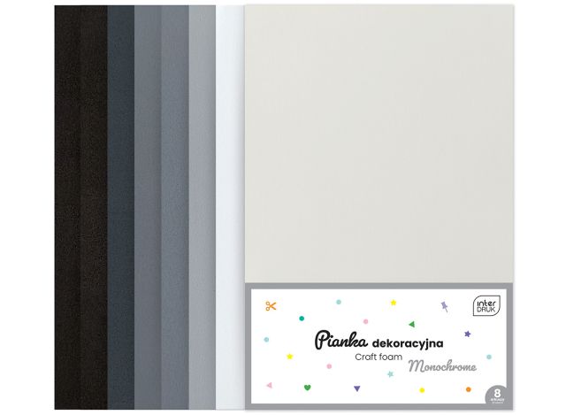 Strona główna » Oferta » Artykuły Ozdobne i Kreatywne » Filc Pianka Guma » Arkusze z pianki i z gumy » Pianka dekoracyjna INTERDRUK A4 8ark. - Monochrome