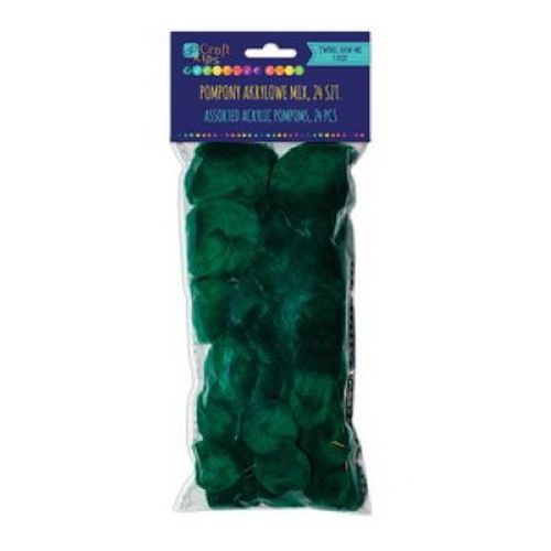 Pompony akrylowe DPCRAFT mix ciemno-zielone 24szt.