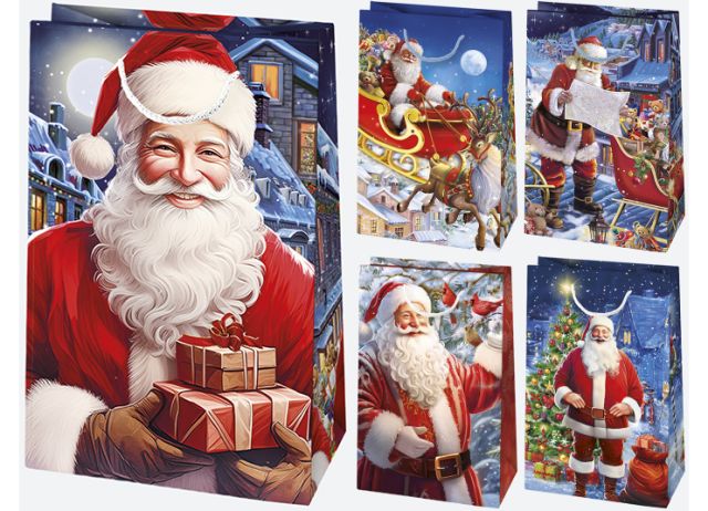 Strona główna » Oferta » Pakowanie Prezentów » Torebki Prezentowe » Torby Papierowe » Torebka ozdobna T1 100x160x60 Gwiazdka zest. 16 Mikołaje a10