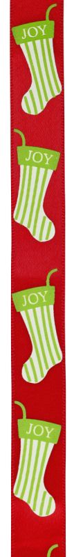 Wstążka Boże Narodzenie TITANUM satynowa z nadrukiem skarpety czerwona 15mm 3m (363076)