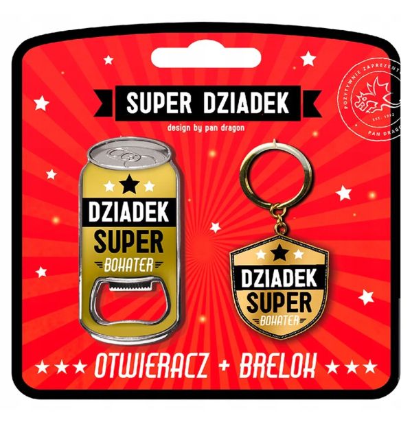 Zestaw prezentowy na Dzień Dziadka - Otwieracz + brelok - Dziadek Super Bohater
