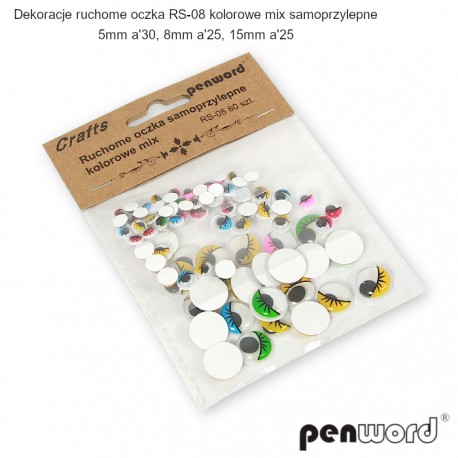 DEKORACJE RUCHOME OCZKA RS-08 KOLOROWE MIX SAMOPRZYLEPNE 5mm a30 8mm a25 15mm a25
