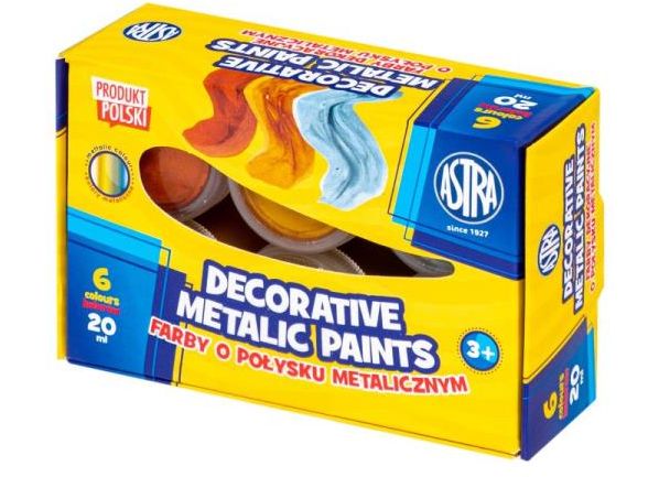 Farby dekoracyjne Astra o połysku metalic. 6 kol x 20 ml STANDARD BOX