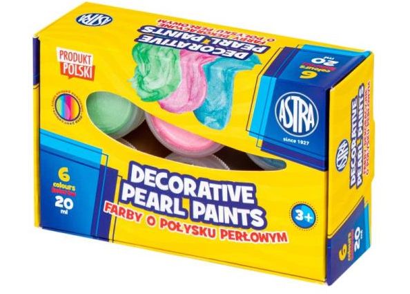 Farby dekoracyjne Astra o połysku perłowym 6 kol x 20 ml STANDARD BOX