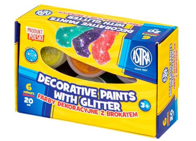 Farby dekoracyjne Astra z brokatem 6 kol x 20 ml STANDARD BOX