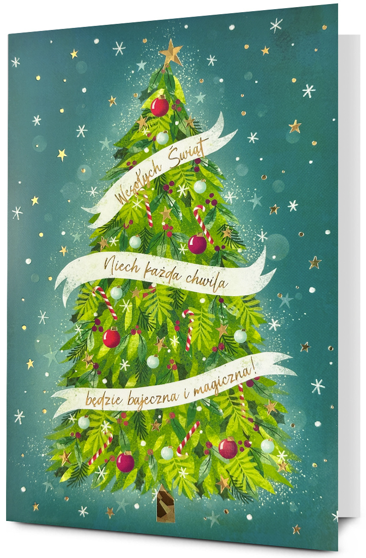 ✨ Kartka „Choinka z ¿yczeniami” to wzór, który idealnie wpisuje siê w tradycyjny klimat Bo¿ego Narodzenia. Z³ocone napisy i holograficzne detale przyci±gaj± wzrok i sprawiaj±, ¿e kartka wygl±da wyj±tkowo efektownie.