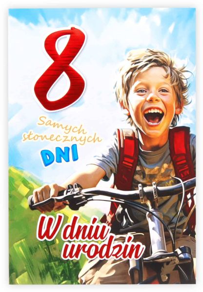 Kartka urodzinowa dla dziecka KZK B6 Nr 030, na 8 urodziny z Rowerzystą