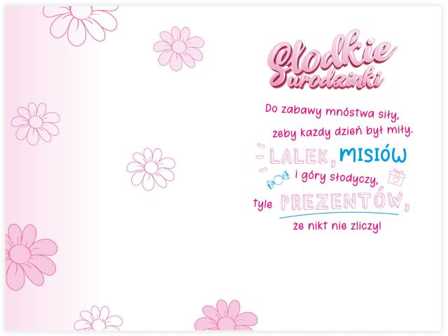 ✔ Wnętrze: kolorowe, z gotowymi, radosnymi życzeniami.