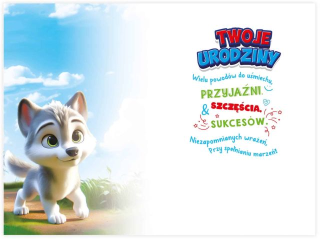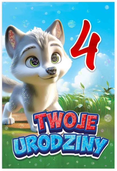 🐺 Kartka urodzinowa KARTKI Z KOTKIEM Wilczek – Twoje 4 Urodziny!