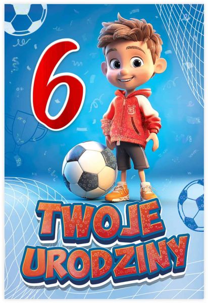 ⚽ Kartka urodzinowa dla dziecka KZK B6 Nr 063 – 6 urodziny chłopca z piłką nożną!