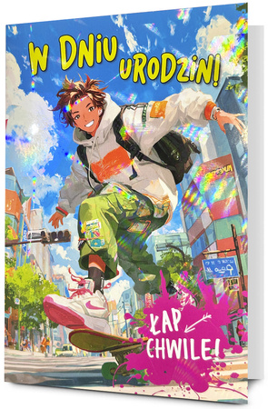 Producent: Pan DragonKartka jest zdobiona opalizującą folią holograficzną, zawiera życzenia oraz kolorowy środek. W zestawie znajduje się koperta, kolorystycznie uzupełniająca się z kartką. Format złożonej kartki: B6