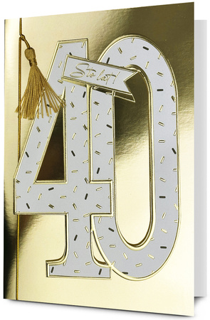 Kartka urodzinowa PAN DRAGON HM 200-3165 Biała cyfra w złocie "40"