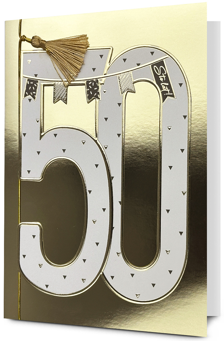 Kartka urodzinowa PAN DRAGON HM 200-3166 Biała cyfra w złocie "50"