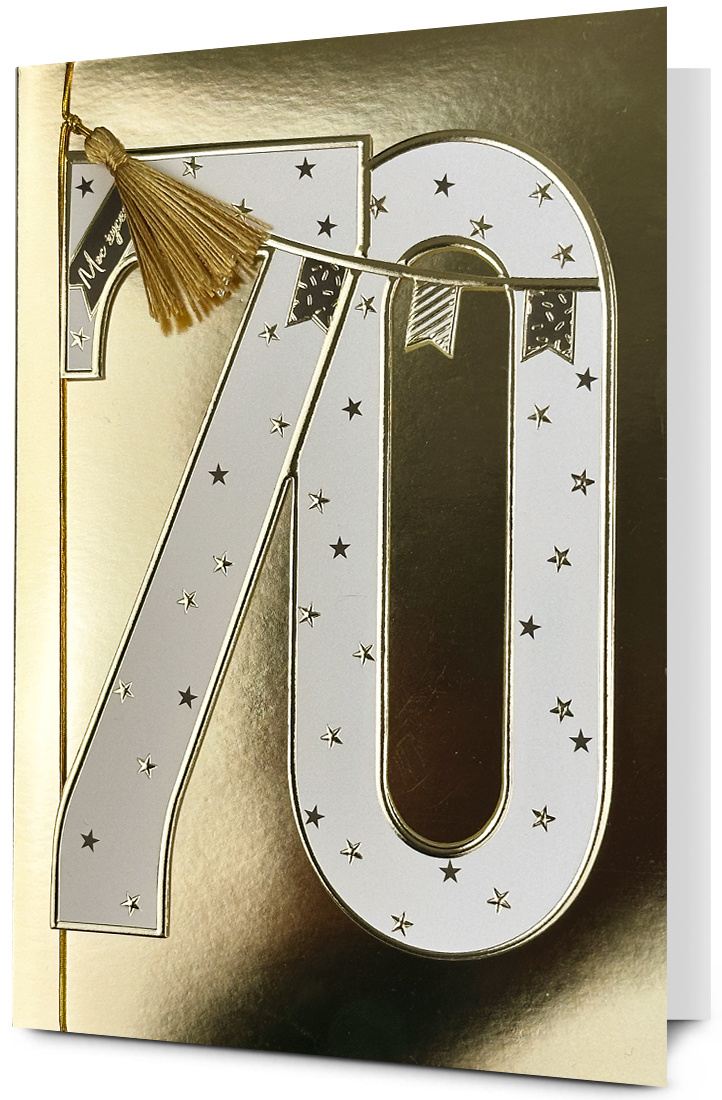 Kartka urodzinowa PAN DRAGON HM 200-3168 Biała cyfra w złocie "70"
