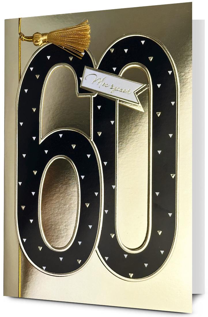 Kartka urodzinowa PAN DRAGON HM 200-3175 Czarna cyfra w złocie "60"