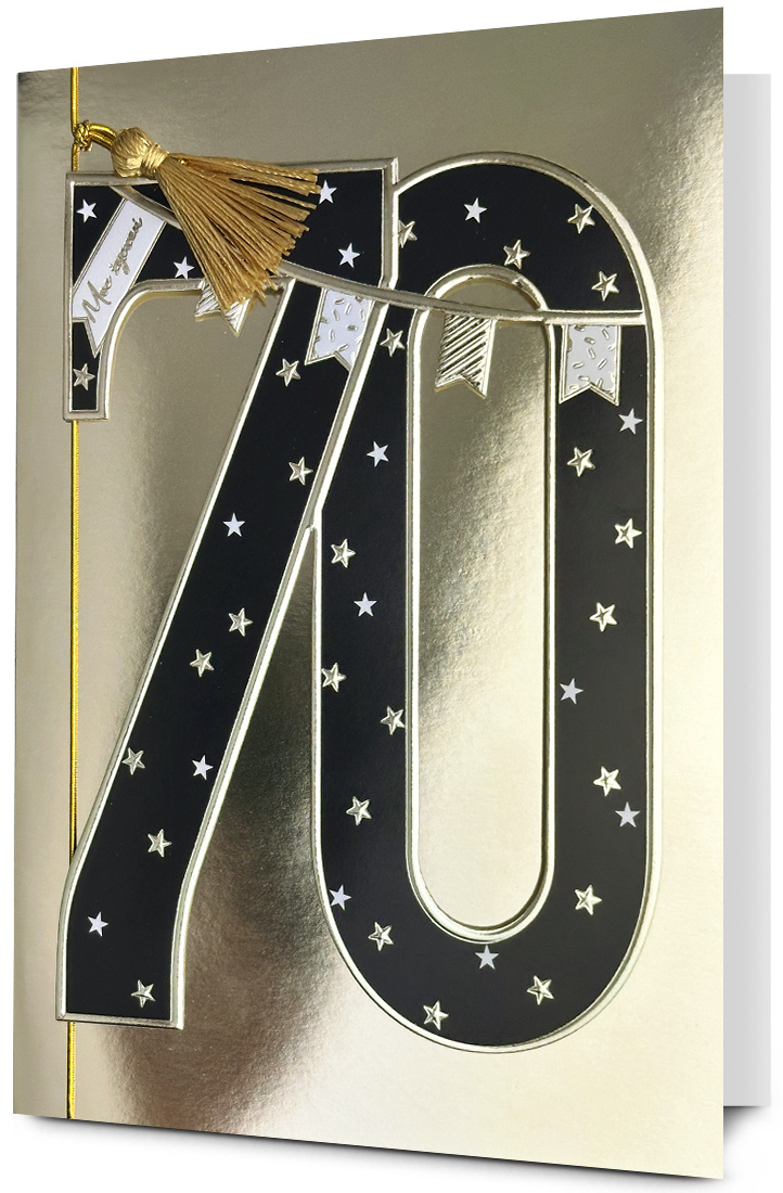 Kartka urodzinowa PAN DRAGON HM 200-3176 Czarna cyfra w złocie "70"