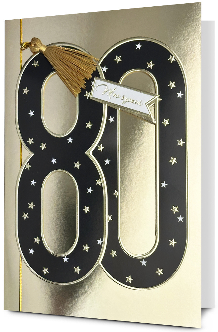 Kartka urodzinowa PAN DRAGON HM 200-3177 Czarna cyfra w złocie "80"