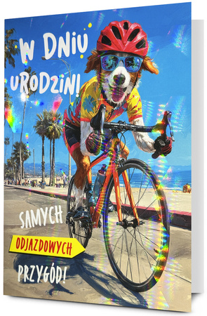 Kartka urodzinowa PAN DRAGON K.B6 HOLO-35 Pies rowerzysta