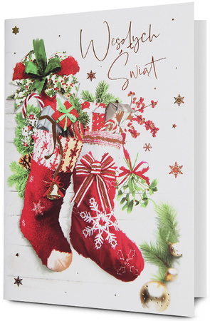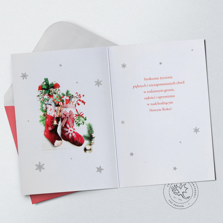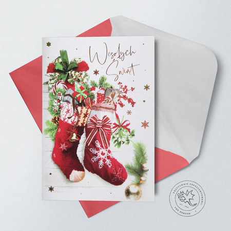 Kartki karnet PAN DRAGON Star 123 Bo¿e Narodzenie skarpety na prezenty "Weso³ych ¦wi±t"