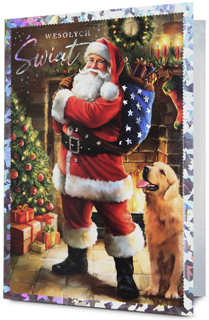 Kartki karnet PAN DRAGON Star 128 Boże Narodzenie Mikołaj z psem "Wesołych Świąt"