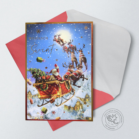 Strona główna » Oferta » Kartki, Pamiątki, Upominki » Kartki Okolicznościowe » Kartki Boże Narodzenie » Kartki karnet PAN DRAGON Star 128 Boże Narodzenie Mikołaj z psem "Wesołych Świąt"