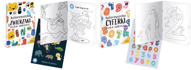Producent: InterdrukFormat: A4. Liczba stron: 16. W środku znajdziesz nie tylko piękne rysunki do pokolorowania, ale także zestaw naklejek i różnorodne zadania, które rozwijają wyobraźnię i zapewniają mnóstwo frajdy. Dwa tytuły dostępne w serii: „Cyferki”, i „Zwierzaki”.