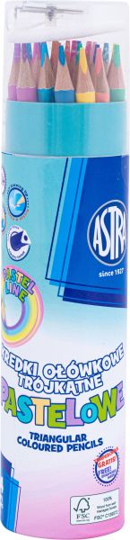 Kredki ołówkowe trójkątne pastelowe ASTRA PASTEL LINE w tubie - 24 kolory + temperówka [opakowanie=6szt]